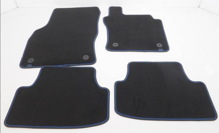 The Volkswagen Genuine textile floor mats are made from durable, high-quality velour with Golf branding, and create a visual highlight that also helps to protect the car interior. The simple 2-point fastening system ensures the Premium floor mats to not slip or turn.